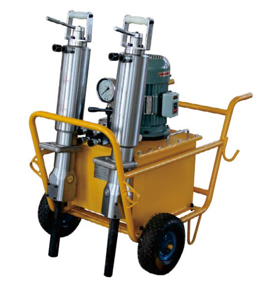 The TYD rock splitter is mainly composed of hydraulic power pump pack and splitter gun, the power pump pack supplies ultra high pressure hydraulic oil to splitter gun, the cylinder of splitter gun can have dozens tons pushing forces, the cylinder drives wedge to expand sides, the expansionary force can be hundreds tons, so, it can divide object from inside. The structure of splitter contains mainly hydraulic station, oil hose, splitter gun and wedge etc.. Compare with traditional working method, it has the advantages: simple structure, easy operation, high working efficiency, low cost, safe, low energy an so on. It's suitable to the secondary breaking, and, it's a good device to replace secondary blasting or manual breaking.